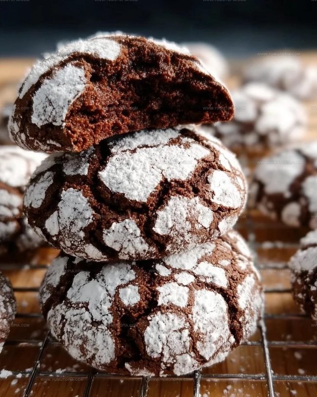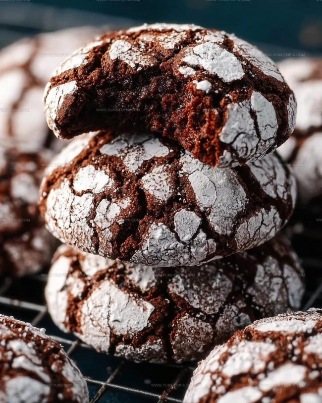 Chocolate crinkle cookies bring pure winter comfort right to your kitchen, dusted with powdered sugar like freshly fallen snow. Crackly on the outside and fudgy within, these delightful treats will make your cookie platter the star of any gathering.
