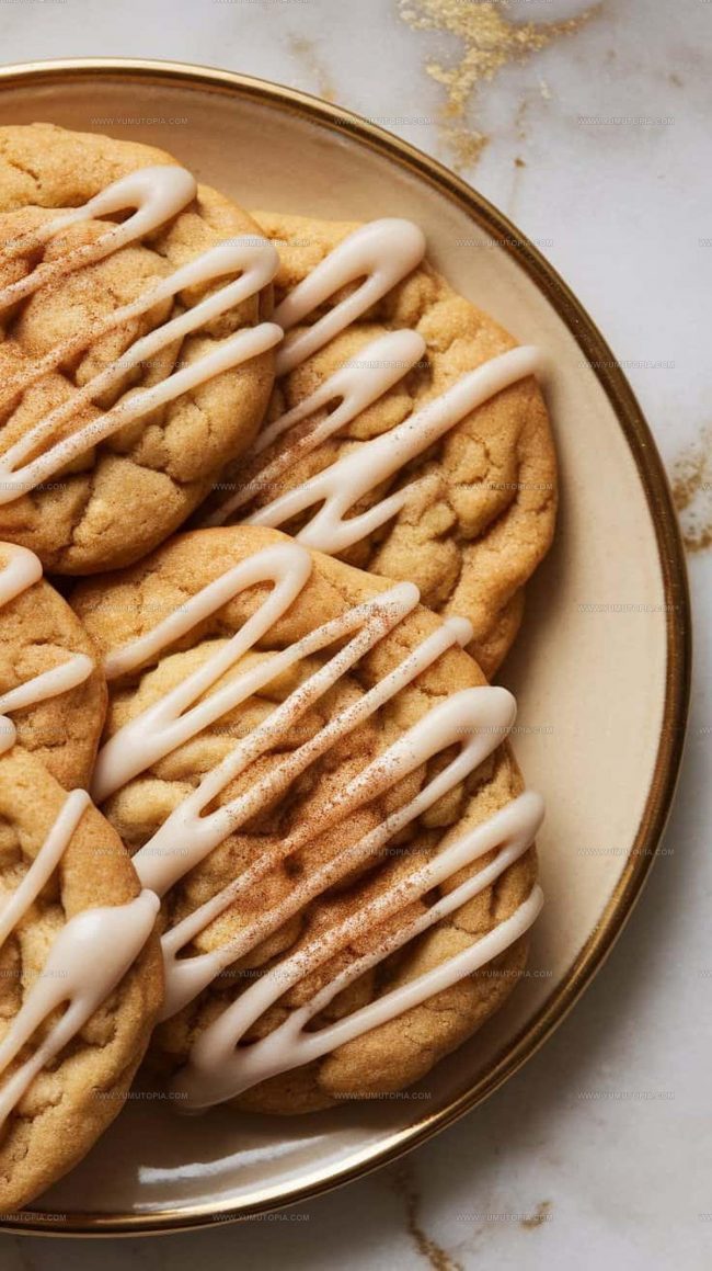 - Drizzle glaze over completely cooled cookies and immediately dust with cinnamon sugar mixture.