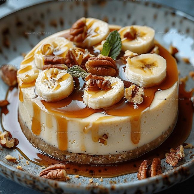 Creamy banana cheesecake with caramel promises pure dessert magic that delights sweet lovers everywhere.