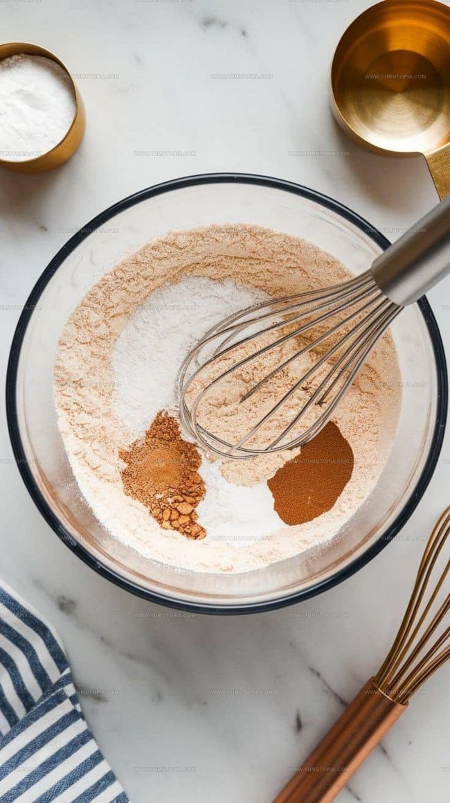 - Whisk 1 ½ cups flour, 1 tsp baking soda, ½ tsp baking powder, ½ tsp cinnamon, and ¼ tsp salt together in a separate bowl.