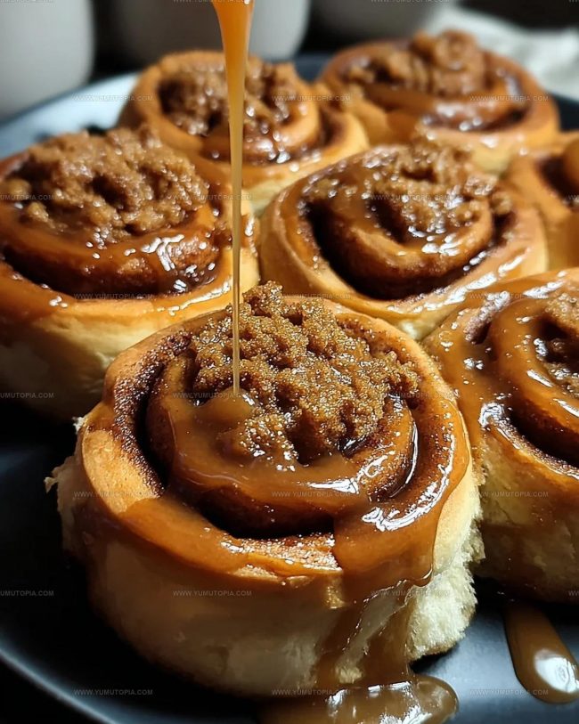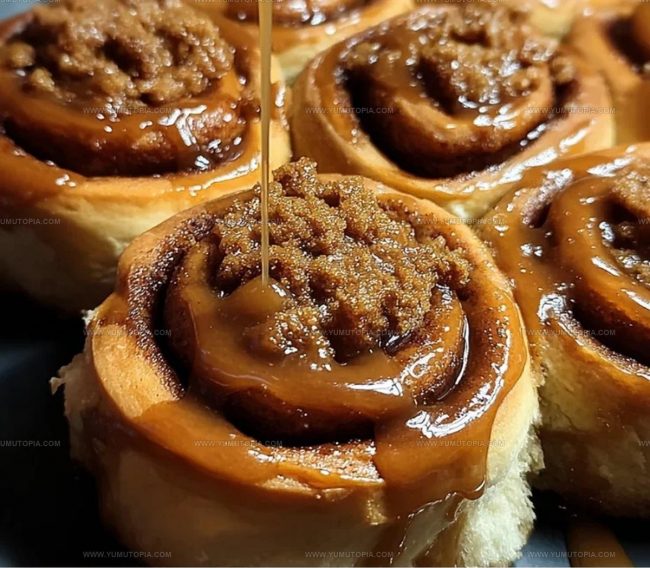 - Generously drizzle the Biscoff glaze over the warm rolls, allowing it to cascade and settle into the crevices.