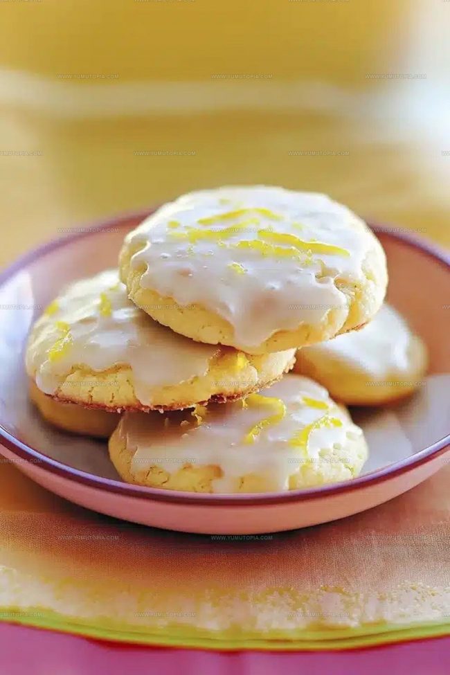 Once the cookies are completely cool, drizzle the lemon glaze over the tops. Sprinkle a bit more lemon zest for an extra citrus kick. Let the glaze set for about 30 minutes before serving.