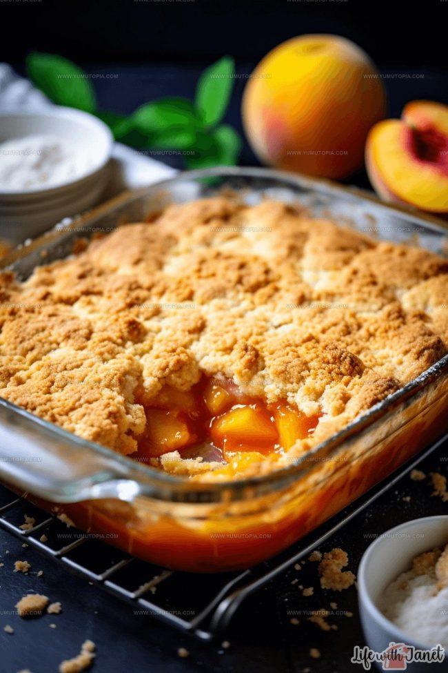 Watch for a golden-brown crust and bubbling peach filling around the edges. Those visual cues indicate your cobbler is perfectly done.