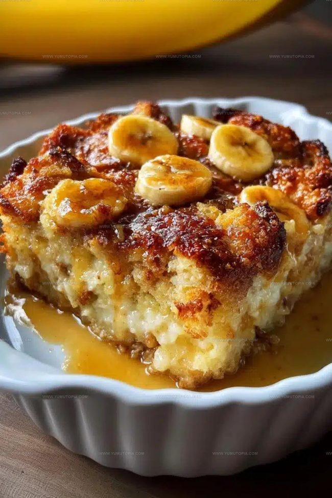 - Serve warm with a small scoop of vanilla ice cream to enhance the dessert’s rich, comforting profile and balance the sweet banana notes.