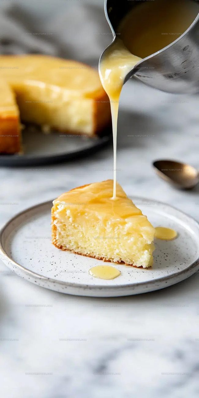 - Slice the warm cake and drench each piece with the luxurious butter sauce just before serving.