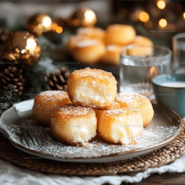 Sprinkle powdered sugar over the warm treats just before serving. Grab a plate and enjoy your crispy, creamy creation!