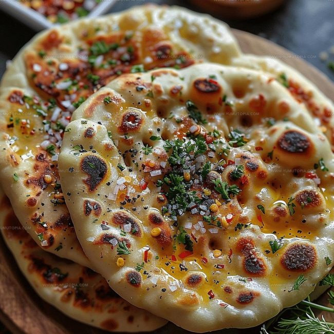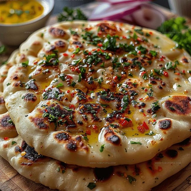 - Transfer cooked flatbreads to a covered plate to retain warmth. Optional: brush with melted butter or sprinkle with chopped parsley.