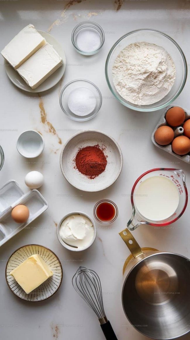 Main Cake Ingredients:Supporting Ingredients:Finishing Ingredients:What Tools Are Used for Red Velvet Cheesecake