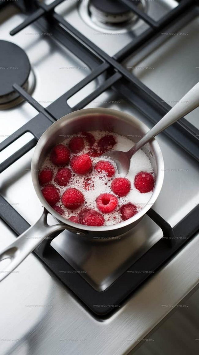 - Combine 1 cup raspberries with 2 tablespoons sugar in a small saucepan over medium heat, cooking until berries break down into a sauce.
