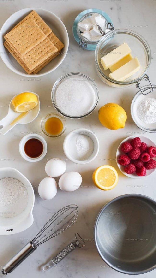 Crust Ingredients:Cheesecake Filling Ingredients:Topping and Garnish Ingredients:Essential Kitchen Tools for Lemon Raspberry Cheesecake