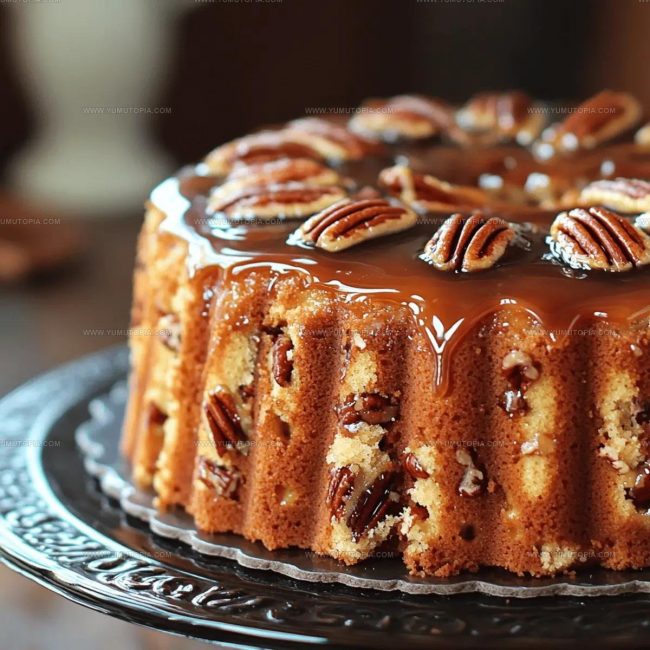 Recipe for Buttery Pecan Praline Poke Cake with Caramel