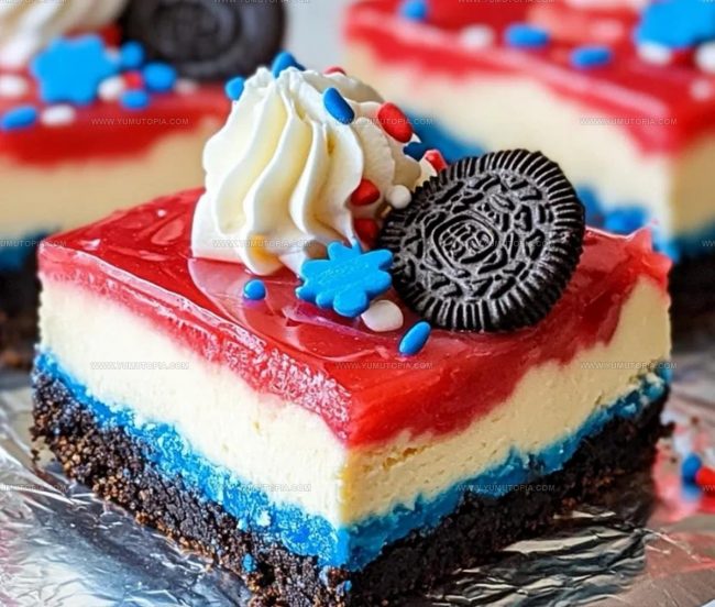 Patriotic Red White and Blue Cheesecake Bars make summer celebrations shine with creamy layers and festive flair. Your dessert table will sparkle with these easy, crowd-pleasing treats that come together in minutes.