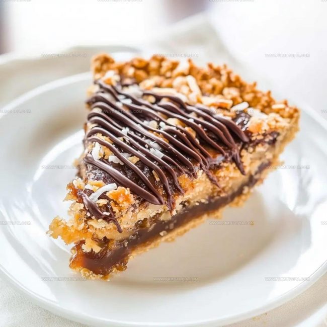 Samoas cookie pie brings together the classic Girl Scout cookie flavors in a delightful dessert that’ll make your taste buds dance. Caramel, chocolate, and toasted coconut create a simple yet irresistible treat perfect for sharing with friends and family.