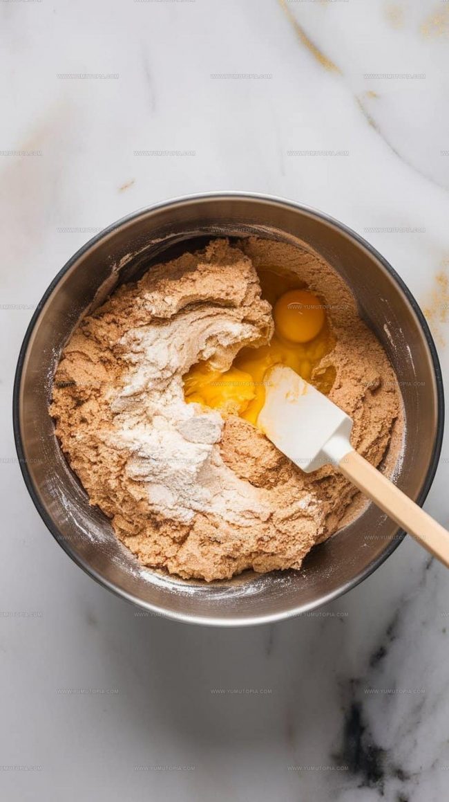 - Gradually fold the dry ingredient mixture into the wet ingredients, mixing until just incorporated. Avoid overmixing to keep the cookies tender.