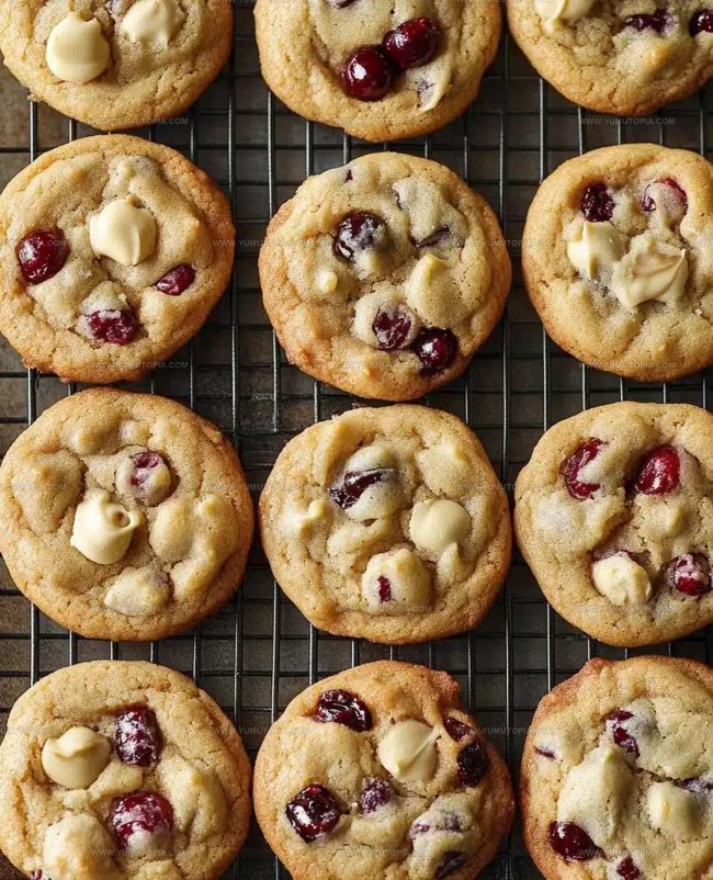 Cranberry White Chocolate Cookies balance tart brightness with creamy sweetness. Festive flavor makes them perfect for sharing.